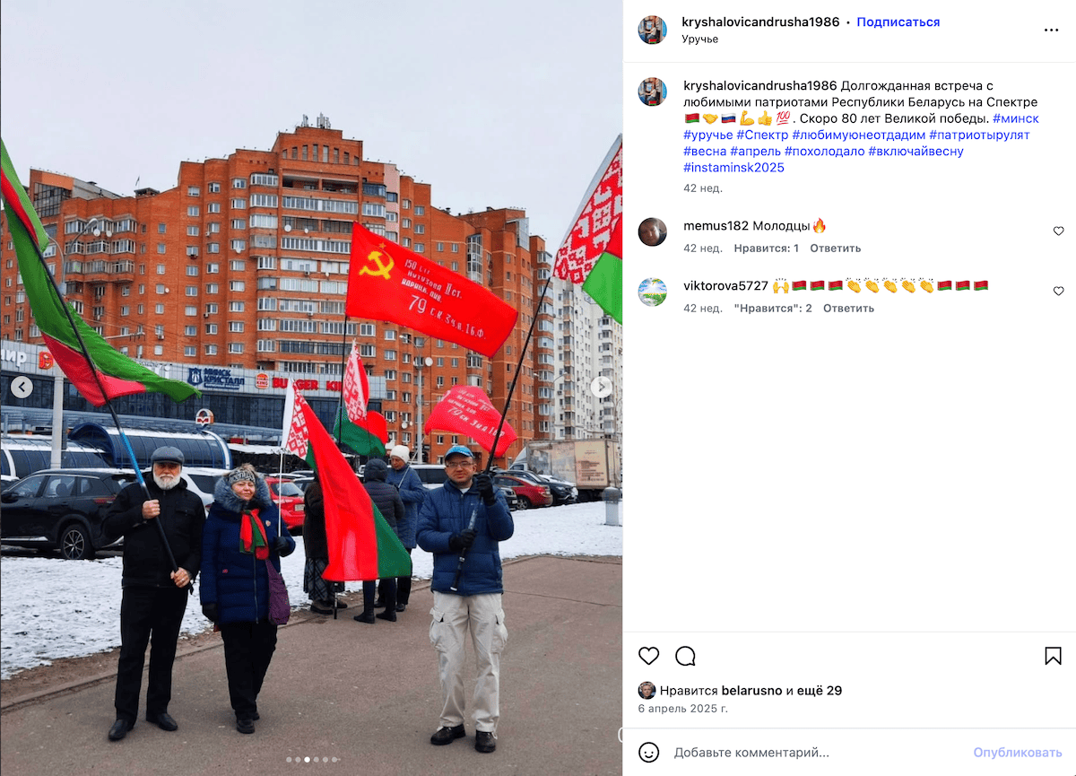 У TikTok ён публікаваў ролікі з пікетаў у падтрымку Лукашэнкі побач з гандлёвым цэнтрам “Спектр” з хэштэгам #любимуюнеотдадим.