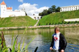 Увечары 13 верасня Віктар Касцюк выйшаў у цэнтр Гродна ў майцы з нацыянальнай сімволікай і сцягам. Яго паспрабавалі затрымаць супрацоўнікі міліцыі. Ён вымушаны быў…