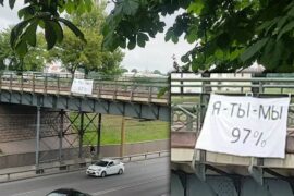 У Гродне 22 чэрвеня на мосце на вул. Гарнавых, аўтобусных прыпынках, дарогах з’явіліся надпісы" 3% «і"97%». Так гродзенцы пратэстуюць супраць затрыманняў прэтэндэнтаў у кандыдаты…
