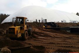 Будаўнічыя работы на месцы будучага футбольнага манежа ў Пышках вядуцца з усіх сіл, бо здаць яго плануюць да канца 2016 года. Яшчэ нядаўна будаўнікі рассцілалі…