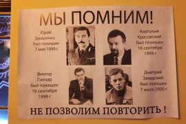 Увечары 16 верасня на вуліцы Савецкай з’явіўся вялікі плакат са згадваннем выкрадзеных і зніклых без вестак палітыкаў Віктара Ганчара і Юрыя Захаранкі, бізнэсмэна Анатоля…