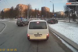 Вечарам 7 лютага кіроўца Porsche Cayenne з расійскімі нумарамі з’ехаў з праезнай часткі і аб’ехаў святлафор па газоне і тратуары. Гэта адбылося на кальцы…