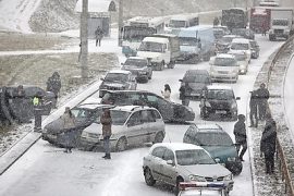 Раніцай 4 снежня на невялікім участку кальцавой дарогі ў Гродне сутыкнуліся 14 аўтамабіляў, перадае БЕЛТА. Магчымай прычынай аварый стала рэзкае пагаршэнне надвор’я.