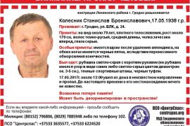 Пашукова-ратавальны атрад “ЦентрСпас” звяртаецца да гродзенцаў з просьбаў дапамагчы знайсці чалавека. Калеснік Станіслаў Браніслававіч, 1938года нараджэння, што жыве ў Гродне па адрасу БЛК, 24-40, 17…