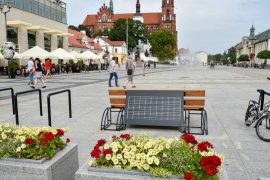 Пяць смарт-лавак з сонечнымі панэлямі з’явілася ў цэнтры Беластока, у тым ліку на Рынку Касцюшкі і ля Тэатра лялек. На такой лаўцы можна наладоўваць…